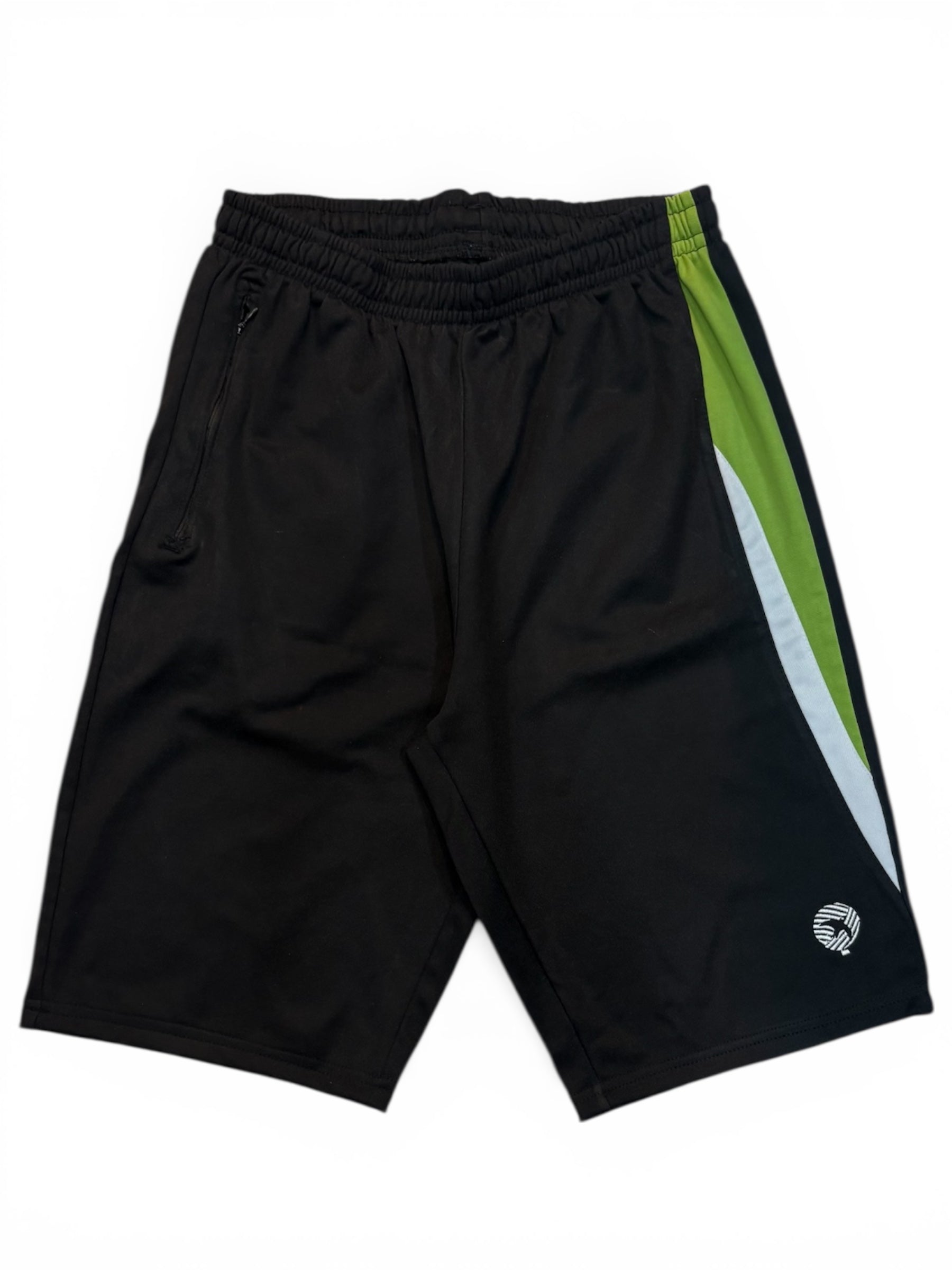 Bermuda tecido colegial com detalhes em branco e verde.